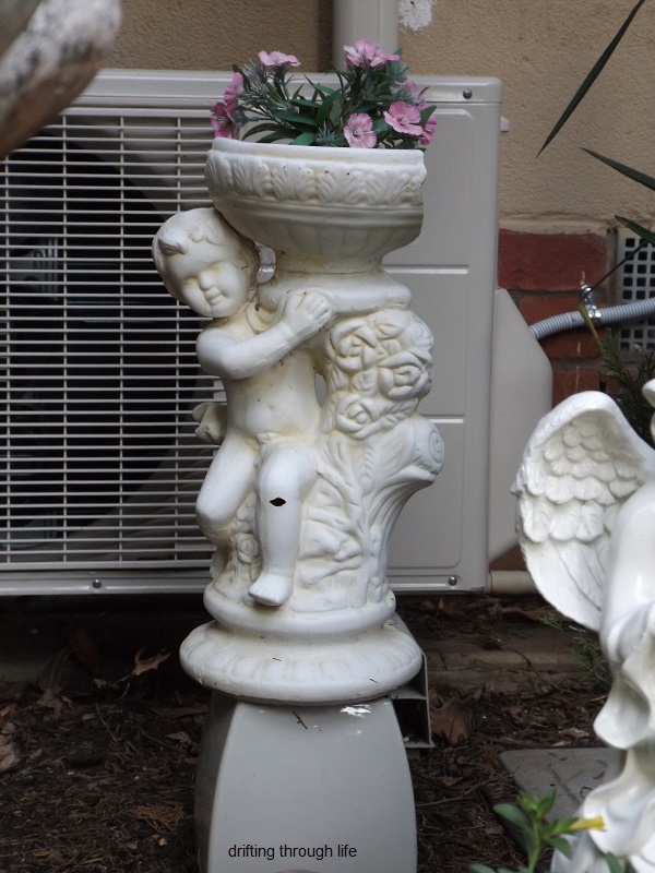 I LOVE this birdbath, which has a pot of something sitting in it, no water.