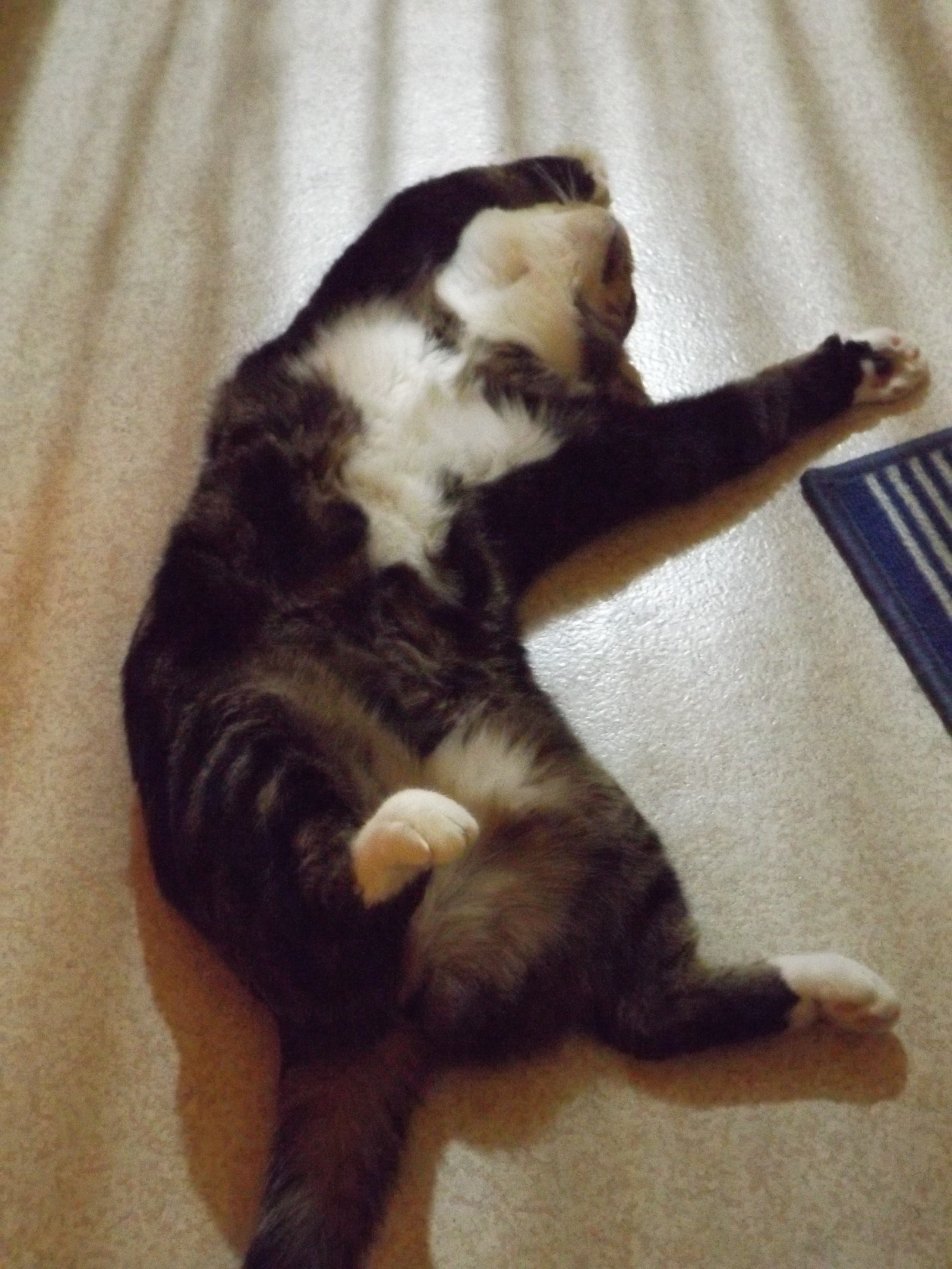 Lola basking in the warmth of the heater which is to the left out of the picture